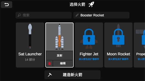 4、点击“创建新火箭”后,你可以自由选用各类不同的配件来搭建火箭,待建造完成后,点击发射按钮即可。