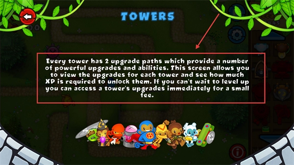 1、每座防御塔均设有两条升级路线,能够查看解锁所需的【XP】,通过付费可以立即解锁升级,从而提升塔的战斗能力。