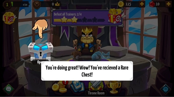 3、每场战斗结束后,都有概率获得开启宝箱的机会。开启宝箱能够获取各类卡牌。