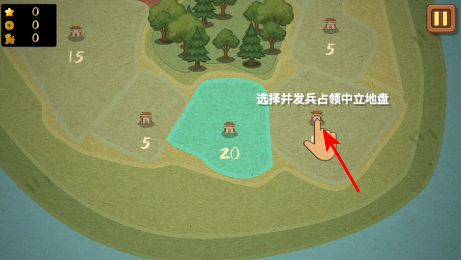 3、按照提示点击中立地盘,选择并派兵占领,这是扩张领地的核心操作,完成后就能获取该地盘的资源与战力。