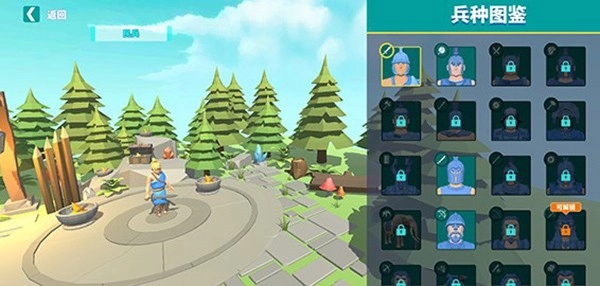 玩家点击右下角的图鉴按钮,就能查看兵种图鉴,其中包含了几十种不同的兵种可供浏览。