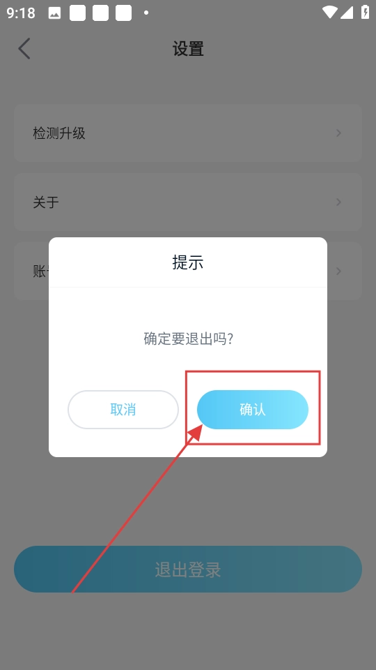 在设置界面点击【退出登录】选项,即可触发退出确认的提示。