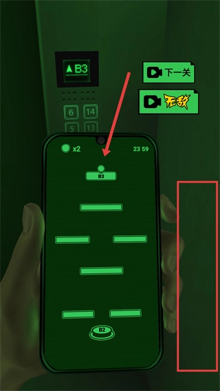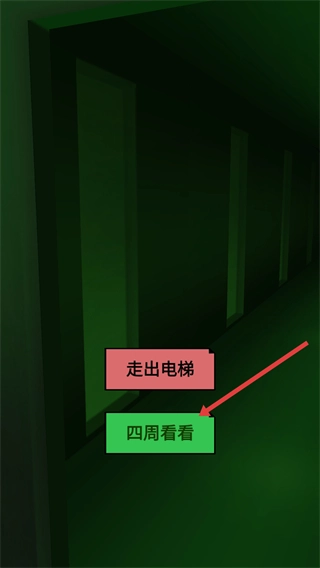 4、完成关卡后,点击【四周看看】按钮,去探索电梯外的场景区域,以此推动后续剧情的发展。