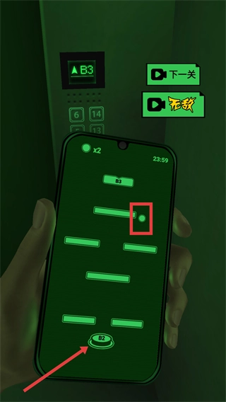 2、进入关卡后,操控手机内的小球,在【B3】对应的轨道区域内移动,避开障碍以推进流程。