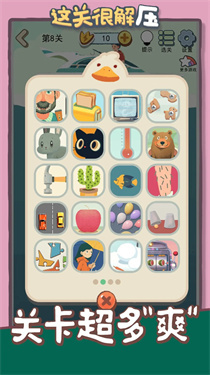 《这关很解压》是一款主打解压体验的休闲闯关游戏,玩法简单易上手,采用卡通风格画面,包含丰富的关卡设计。每个关卡都设置了独特的挑战任务,需要玩家快速施展强力技能来完成。这款精心打造的解压游戏,既能勾起玩家的探索欲,又能锻炼他们解决问题的能力和策略思维,是一款兼具趣味性与益智性的休闲佳作。玩家完成当前关卡的挑战并取得胜利后,即可解锁下一关,还能获得减压相关的成就与奖励,在闯关过程中不断提升自身的逻辑思维和操作技巧。