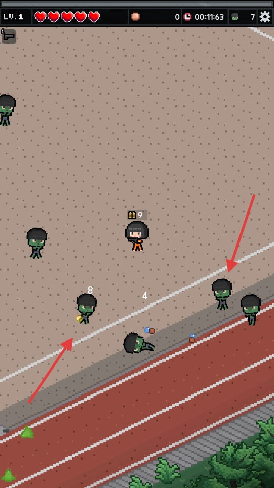 3、当遭遇从多个方向袭来的僵尸时,要借助武器进行射击攻击,注意观察僵尸头顶显示的伤害数值,优先处理威胁程度较高的敌人,并及时拾取掉落的道具。