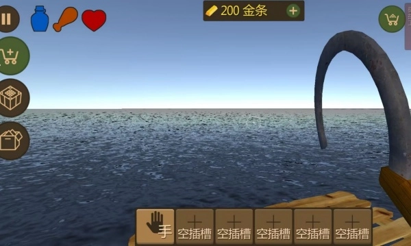 2. 玩家初始仅拥有一架脆弱木筏,必须通过打捞四周漂浮的电子零件与稀有材料来维持生命并强化据点。