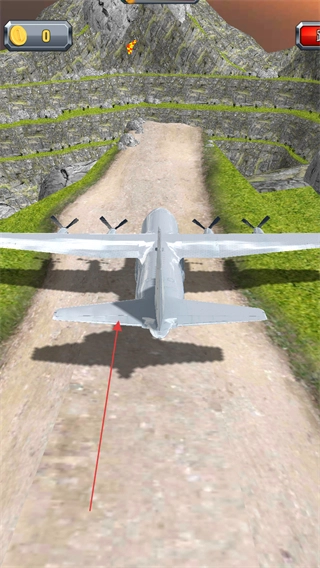 1、控制飞机在山间道路滑行,保持飞行轨迹平稳,开始推进距离收集金币。