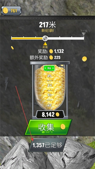 4、滑行到217米创下新纪录,点击收集即可领取奖励,其中包含1132基础奖励与额外奖励。