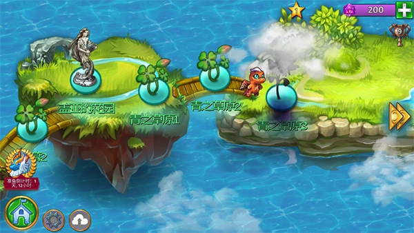 2.进入岛屿闯关界面,这是新手的第一关,后续可在该界面随时重温已通过的关卡。