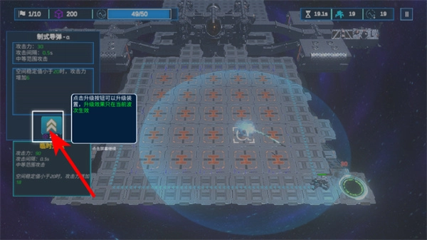 4、进入制式弹等功能界面,查看道具的攻击力、范围等属性信息,选择合适的区域部署道具,以增强场景内的作战能力。
