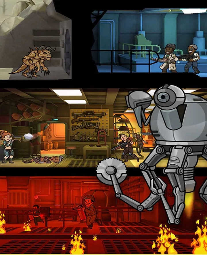 除此之外,《辐射避难所》并非只有经营元素,还会遭遇各类强盗的袭击。此时玩家需要派遣由难民组成的队伍去抵御外敌、保卫避难所。游戏内提供了多种枪械和装备可供挑选,这一设定也巧妙呼应了《辐射》系列正传的核心玩法特色。