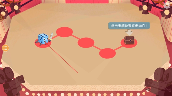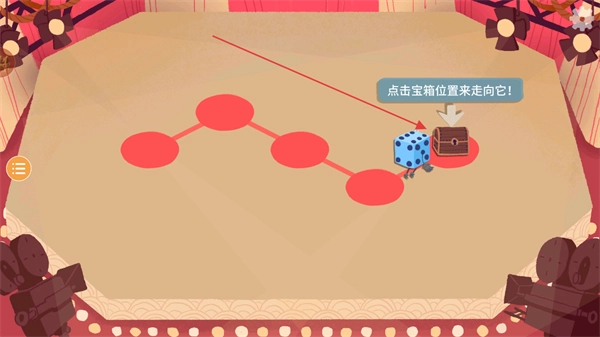 1、根据提示点击宝箱所在位置以进行定向操作,控制骰子角色顺着路径朝宝箱方向移动。