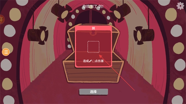 3、打开宝箱可获得一把剑,该剑的效果是造成1点伤害,点击即可选择获取此道具。