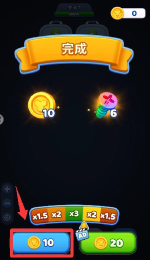 4、恭喜你过关了,点击领取奖励并继续。