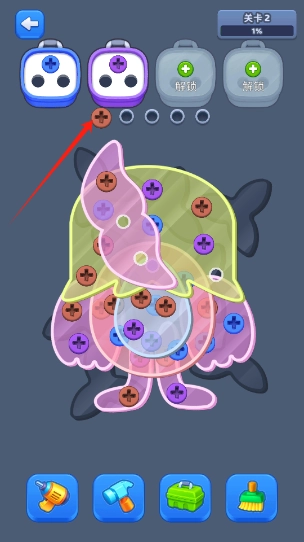 2、进入游戏点击粉色的螺丝拧出来。