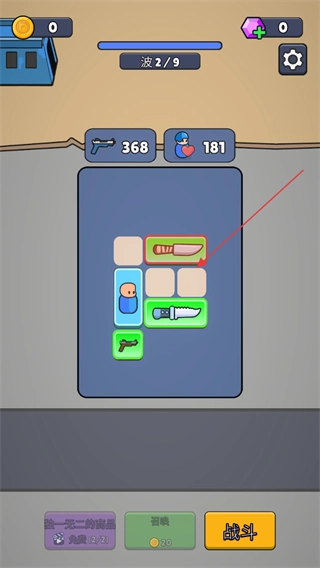 3、完成合并后点击战斗,进入波2/9的战斗关卡。