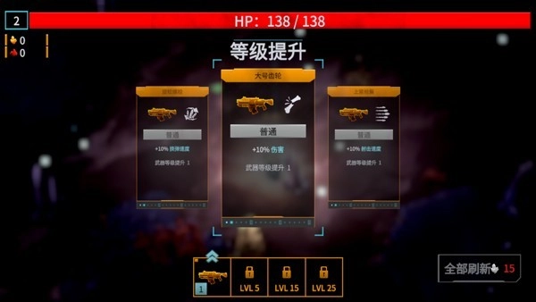 5、游戏采用自动射击机制,玩家通过消灭虫群积累经验值提升等级,每次升级时都可以从多个强化选项里挑选一项。