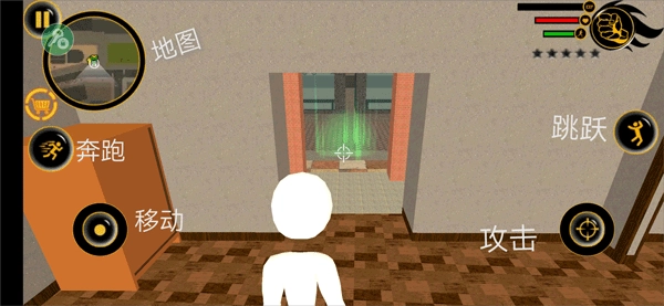 3、然后使用移动按键将火柴人移动至绿点接取任务