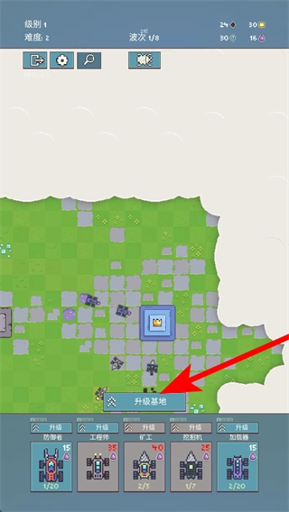 2、在基地场景下,点击“升级基地”按钮是进入基地升级界面的关键操作,通过这一操作能够解锁基地属性及功能的升级选项。