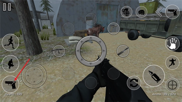 1、在游戏里,你可以借助左侧的摇杆来操控角色移动,而且上方还设有奔跑和蹲下模式可供选择。