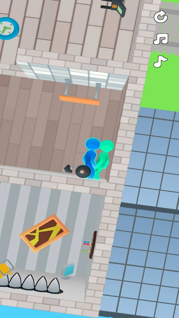 2、依据关卡给出的要求来调整房间的角度,使角色能够从二楼平稳地降落到一楼,并且精准地到达指定的位置,以此达成基础的闯关目标。