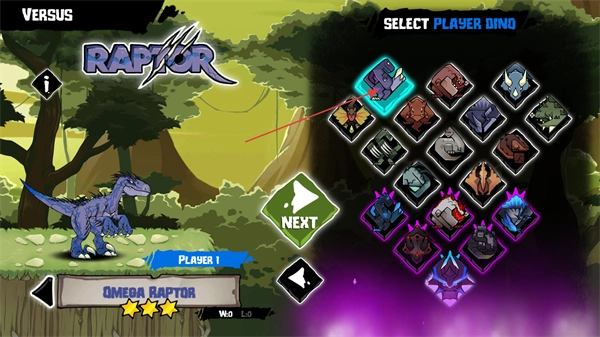 2、从右侧的恐龙列表里挑选你喜欢的恐龙来使用,点击NEXT按钮就能进入战斗环节。