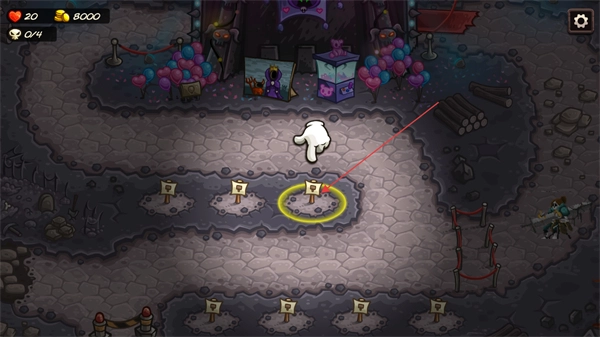 进入游戏场景后,点击被指引的造塔位置,就能唤起造塔操作界面,以便为布置防御塔做好准备。