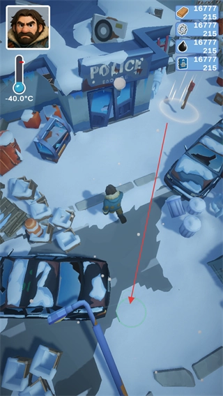 进入雪境末日地图后,可通过滑动屏幕的任意空白区域来操控人物角色在地图内移动,以此搜寻资源。