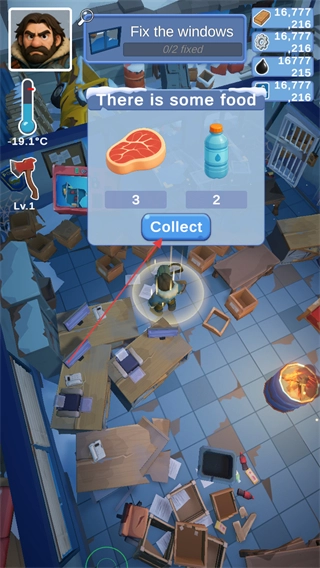 2、在地图里找到发光的装备,点击Collect按钮就能获取该装备。比如拾取背包能得到肉和水资源,拾取斧头则可用来砍伐物资等。