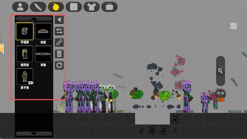 4、点击界面上方的炸弹图标,可选择手榴弹等武器道具,对感染体造成范围伤害,以便在关键时刻快速清理敌人。