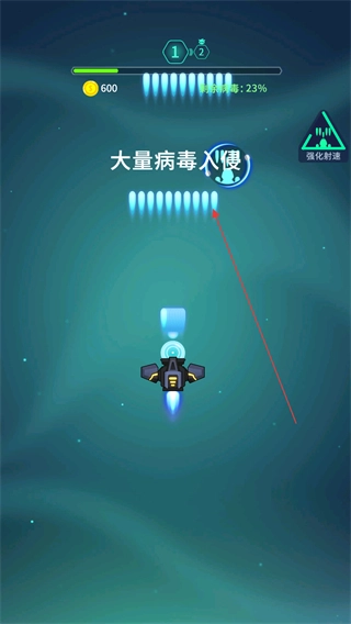 2、持续对敌方目标发起攻击,降低剩余病毒进度,积累得分。