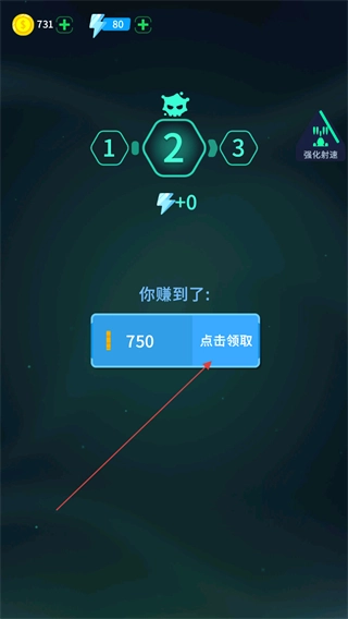 4、通关后点击领取按钮,即可获得该关卡对应的750金币奖励。