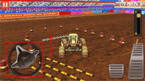 1. 借助虚拟方向盘或按键对卡车的油门、刹车、前进及后退进行操控,还能切换不同视角以观察周边环境。