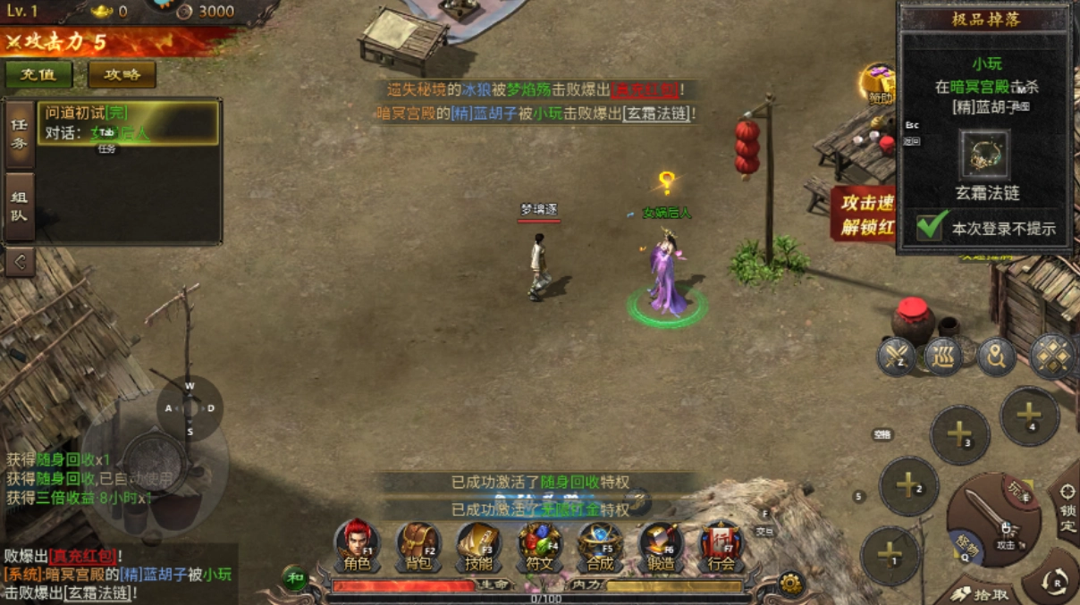 击杀怪物后还能一键回收不需要的装备,避免浪费培养资源。
