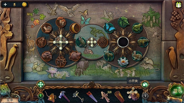 15、返回小屋,对5使用小开关启动小游戏(把动物与图案对应起来),完成后得到能量球。
