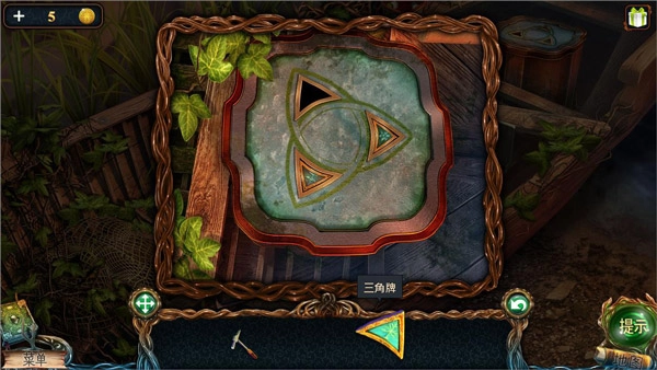 13、用放大镜观察数字9,找出其中隐藏的四个符号;接着将这四个符号用于数字11,即可获取三角牌。