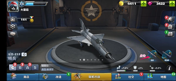 在战机选择方面,玩家可以根据不同的任务需求以及自身的喜好,挑选侦察机、攻击机等不同类型的战机。此外,游戏还设有科技系统,玩家通过该系统可以提升战机的性能,每一次科技升级都能为战机带来对应的属性加成,例如敏捷度、飞行速度、装甲防护等。