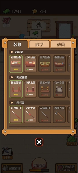 进入武馆管理系统,玩家可以对武馆的设施进行装修