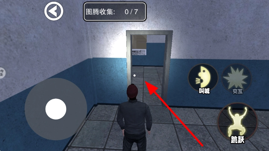 新手玩家初次接触游戏时,可以操控角色朝门口方向移动;当角色抵达门口位置后,探索出门,就能进入走廊这类更开阔的场景了。