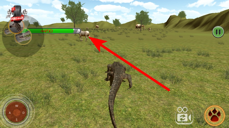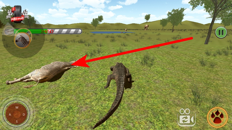 指挥鳄鱼悄悄接近斑马,做好捕猎的准备,这时候得留意一下周边的环境。