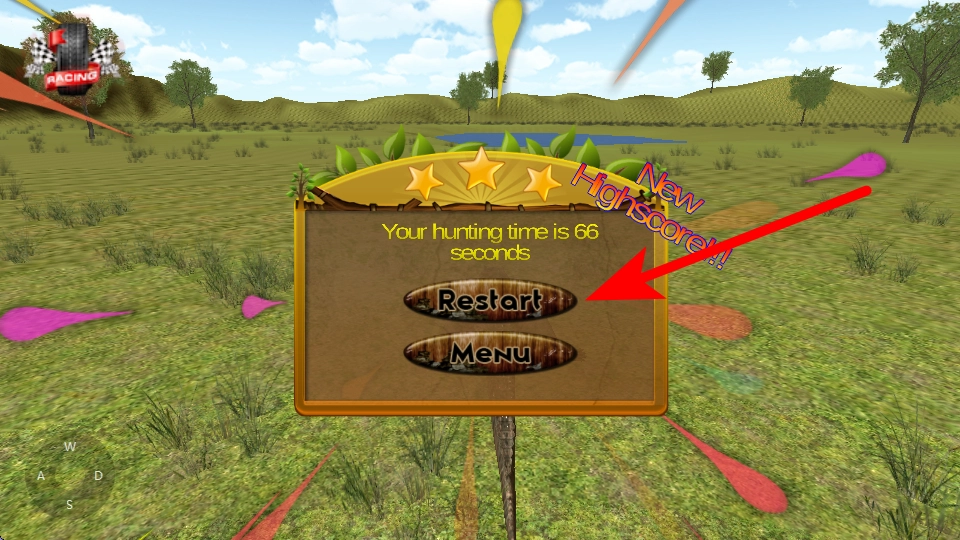 这次捕猎仅用了六十六秒,刷新了最高分记录,您可以点击按钮重新开启游戏。