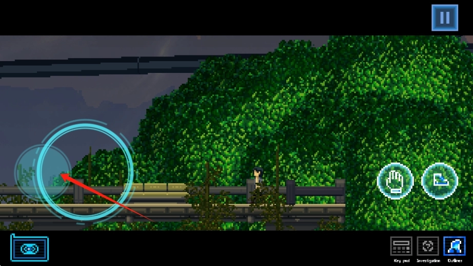 点击左侧的移动控制区域,能够操控角色在场景里移动,探索地图,找到线索与道具。