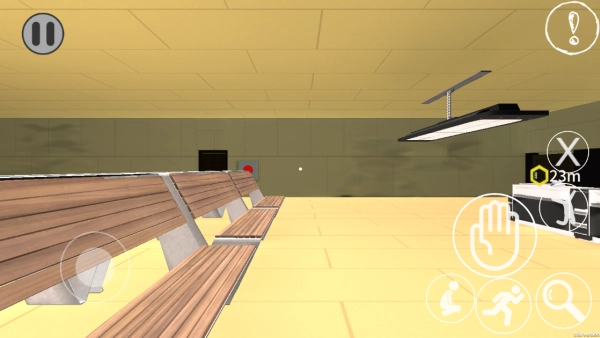 用左边的虚拟摇杆控制移动,右边的按键负责交互操作,按照任务给出的提示去解开谜题、探索场景,最终顺利从这里逃出去!