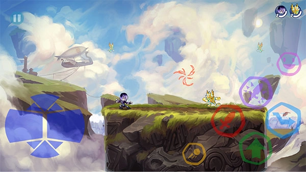 左侧按键负责操控角色的移动,右侧按键则用来对敌人发起攻击,只要能成功把对手从擂台上打下去,就能赢得胜利。