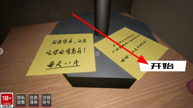 进入游戏后,你会看到几张带有提示性质的便签,认真阅读这些便签上的内容,就能得到在这个恐怖世界里生存下去的重要信息,给接下来的行动指明方向。