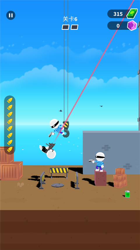 之后角色会自动跳跃并进入慢动作状态,玩家只需在红线对准敌人的瞬间点击屏幕就行。