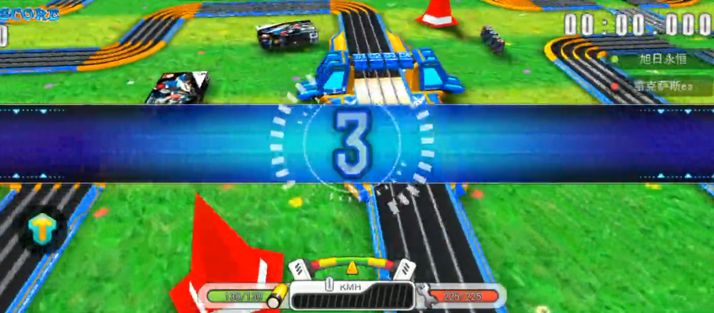 方形跑道的难点主要在于直道与弯道的衔接处。直道阶段可以放心踩油门加速,等接近弯道的转弯点时,短暂松开加速按钮后马上再踩下去,这样既能平稳过弯,又不会损失速度。