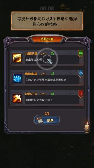 当玩家成功闯过关卡后,系统会提供三种技能供选择,玩家可挑选合适的技能来使用。