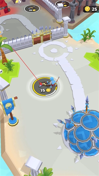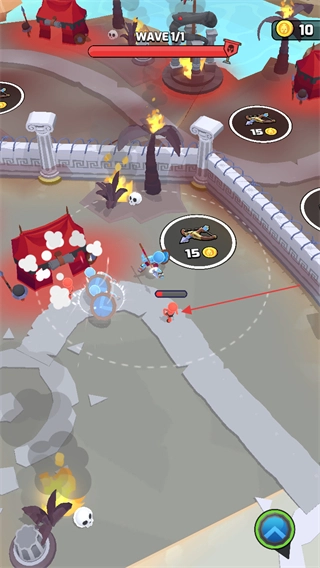 2、操控角色移动到场景里的道具点附近,消耗金币建造这座防御塔,以此获得相应资源,从而增强关卡内的作战能力。